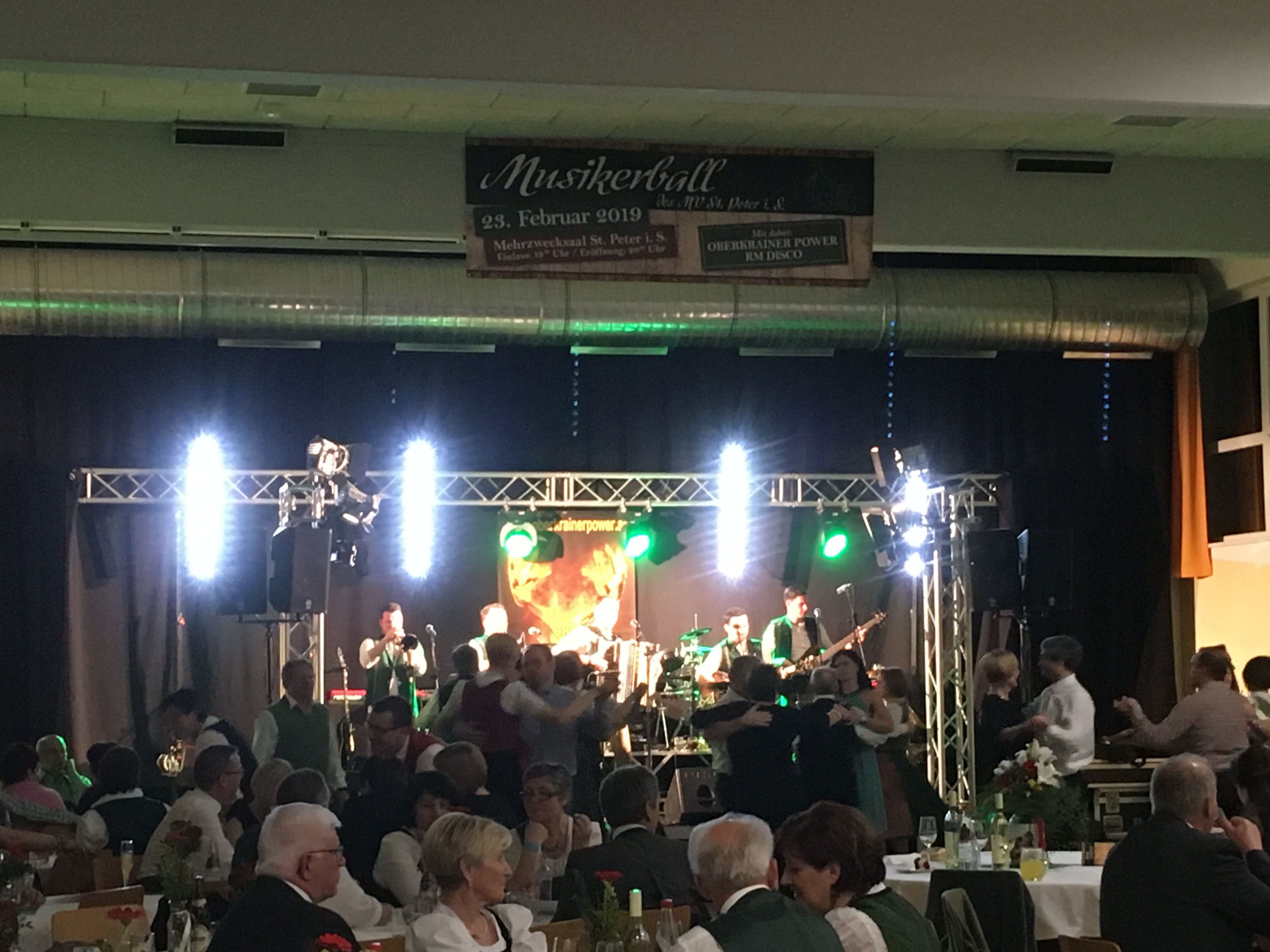 Am 23. Februar lud der Musikverein Sankt Peter zum Musikerball in den Mehrzwecksaal. Eröffnet wurde der Ball mit einer tollen und überaus gelungenen Polonaise der Landjugend Sankt Peter. Unterhalten wurden die rund 300 Gäste von Oberkrainer Power und RM Disco, kulinarisch verwöhnt vom Team der Tanzmühle.
